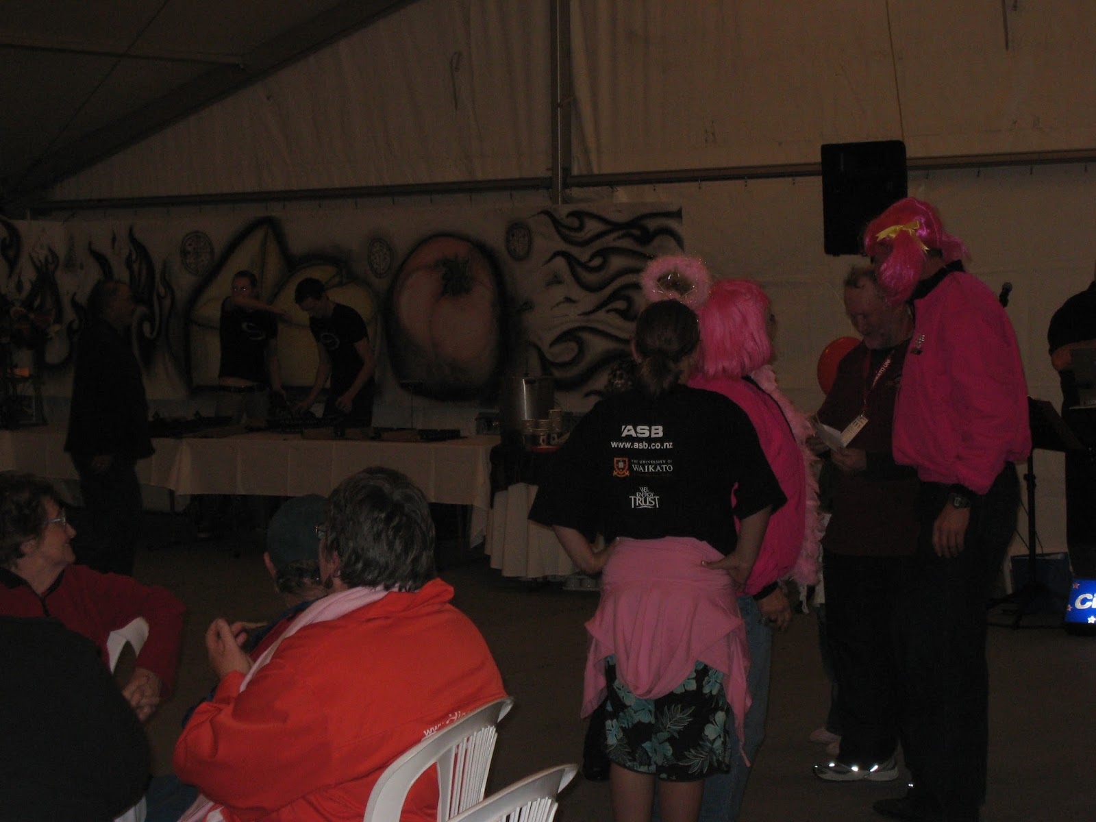 taking this really serious and are dressed up in pink clothes and funny hair
